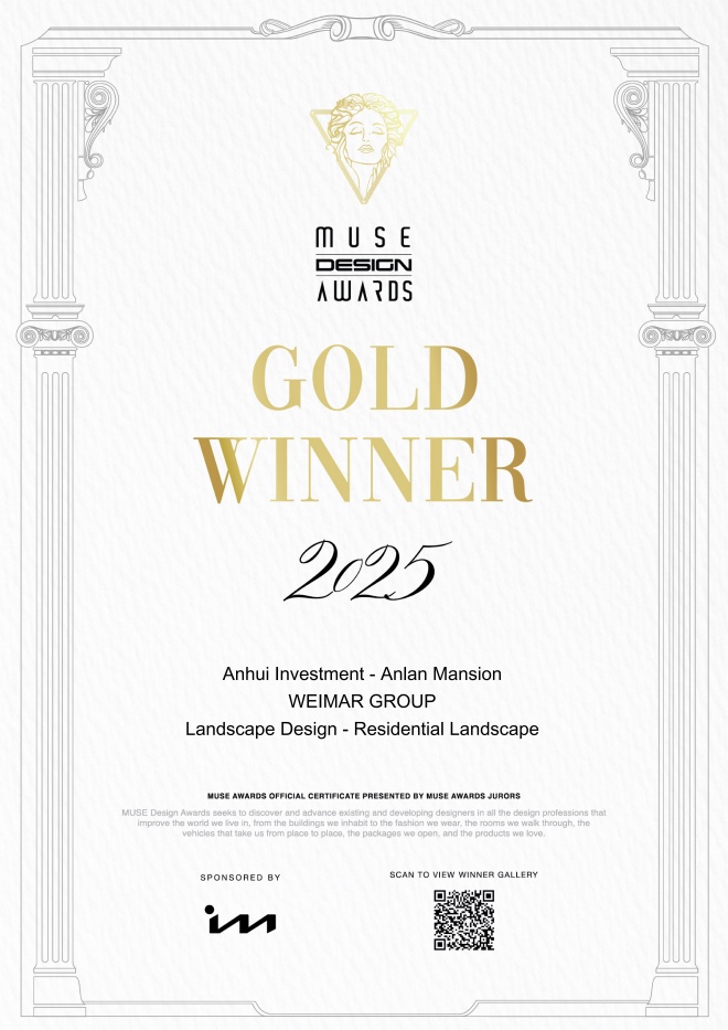美國Muse設(shè)計(jì)獎(jiǎng)由國際獎(jiǎng)項(xiàng)協(xié)會(huì)主辦,為全球設(shè)計(jì)領(lǐng)域重要賽事。皖投·安瀾府憑借建筑與自然環(huán)境和諧共生的設(shè)計(jì)理念,以及通過科技系統(tǒng)提升室內(nèi)環(huán)境質(zhì)量的創(chuàng)新實(shí)踐,在景觀設(shè)計(jì)類別中脫穎而出,榮獲金獎(jiǎng)。這一榮譽(yù)既是對(duì)項(xiàng)目美學(xué)設(shè)計(jì)的肯定,也是對(duì)其“以人為本、健康宜居”理念的國際認(rèn)同。