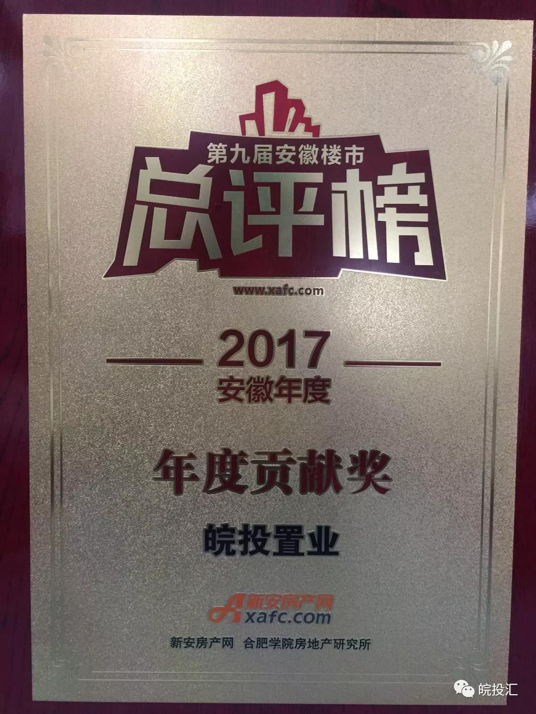 在2017年安徽年度地產(chǎn)評(píng)比中,皖投置業(yè)公司榮獲安徽樓市總評(píng)榜年度貢獻(xiàn)獎(jiǎng);合肥皖投天下名筑項(xiàng)目榮獲2017安徽地產(chǎn)金樽獎(jiǎng)人居典范樓盤獎(jiǎng)項(xiàng)!