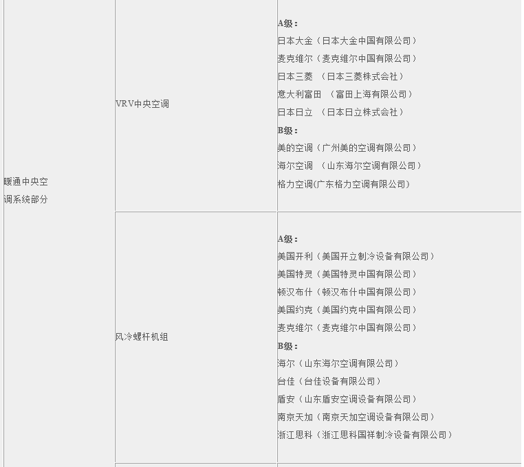 安徽皖投置業(yè)有限責(zé)任公司設(shè)備、材料品牌庫