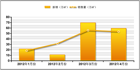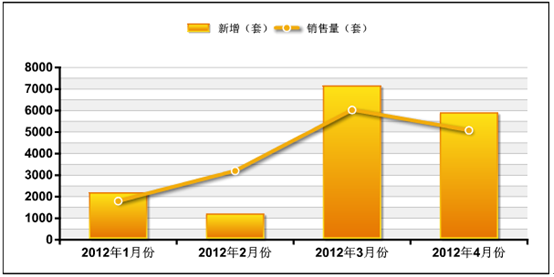 2012年3月份2012年4月份套數(shù)新增(套)71185869銷售量(套)60275083供銷比(%)118.10%115.46%面積新增(萬㎡)69.5959.34銷售量(萬㎡)55.7553.37供銷比(%)124.83%111.19%