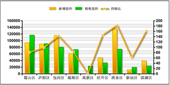 新增套數(shù)銷售套數(shù)供銷比新增面積銷售面積供銷比蜀山區(qū)920102789.58%93829.99116402.4280.61%廬陽區(qū)78095881.42%89674.8390892.1398.66%包河區(qū)1110788140.86%115063.4180328.14143.24%瑤海區(qū)67283880.19%60734.5272915.4583.29%高新區(qū)0174-022800.67-經(jīng)開區(qū)560346161.85%47995.4432905.01145.86%政務(wù)區(qū)1312468280.34%135712.5273957.05183.50%新站區(qū)12523253.88%11861.2119744.3460.07%濱湖區(qū)390252154.76%38511.8823720.59162.36%