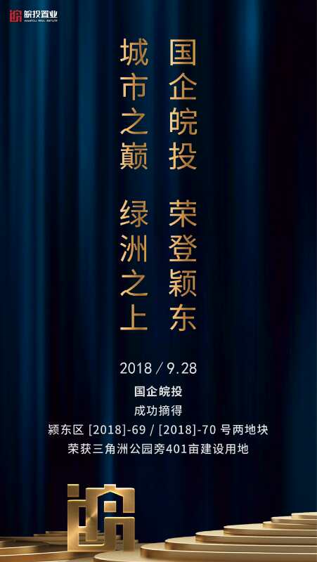 2018年9月28日下午15時,在阜陽市公共資源交易中心,皖投置業(yè)公司通過招拍掛成功競得阜陽市2018-69號宗地、2018-70號宗地,合計總面積401.412畝。