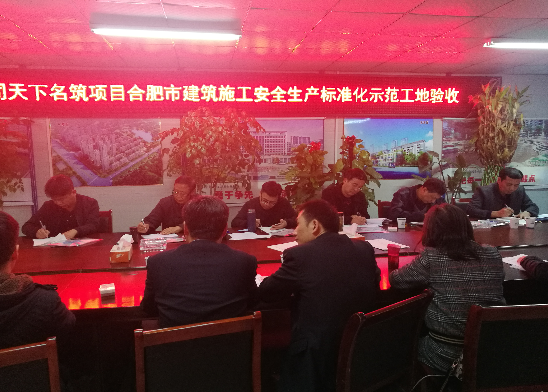 2017年11月28日,合肥市建筑協(xié)會專家領(lǐng)導(dǎo)一行蒞臨合肥天下名筑項目,對二期工程進(jìn)行合肥市建筑施工安全標(biāo)準(zhǔn)化示范工地驗收,項目部、監(jiān)理單位、中鐵四局相關(guān)負(fù)責(zé)人參加。