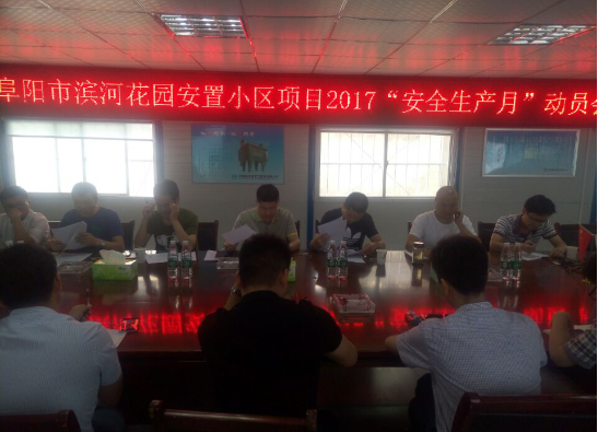 2017年6月13日,阜陽城市公司組織濱河花園項(xiàng)目總包、監(jiān)理單位相關(guān)負(fù)責(zé)人召開2017年“安全生產(chǎn)月”和“安全生產(chǎn)江淮行”動員會。阜陽城市公司全體成員參加了動員會。