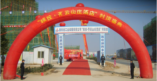 項(xiàng)目現(xiàn)場彩旗招展、賀幅林立,五彩拱門與紅地毯交相輝映,禮花綻放、嘉賓滿座,共同慶賀皖投&middo;齊云山莊酒店主體結(jié)構(gòu)封頂。儀式上,皖投置業(yè)總經(jīng)理、安徽省工業(yè)設(shè)備安裝公司總經(jīng)理以及安徽省全椒縣經(jīng)濟(jì)開發(fā)區(qū)主任,均做了熱情洋溢的發(fā)言對酒店結(jié)構(gòu)封頂表示熱烈祝賀,并希望各承建單位和部門繼續(xù)發(fā)揚(yáng)真抓實(shí)干,精益求精的一貫作風(fēng),認(rèn)真完成后續(xù)設(shè)備安裝和精裝修工程,確保2012年11月順利試營業(yè)。