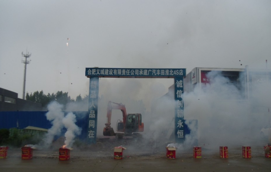 2012年5月8日上午10點38分,皖投融富置業(yè)公司淮北廣汽豐田4S店項項目現(xiàn)場禮炮齊鳴,爆竹聲聲,展廳二及配套服務用房項目正式破土動工,進入工程建設階段。