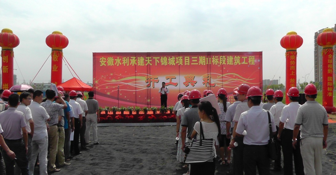 2013年7月28日上午,天下錦城三期Ⅱ標(biāo)段開(kāi)工典禮隆重舉行。安徽皖投置業(yè)有限公司、安徽水利開(kāi)發(fā)股份有限公司、安徽省中灝工程咨詢有限公司等單位相關(guān)人員出席開(kāi)工儀式。
