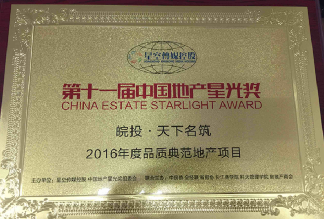 皖投安慶天下名筑榮獲“2016年度品質(zhì)典范地產(chǎn)項(xiàng)目”