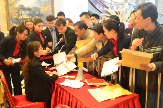 清晨細(xì)雨綿綿,但抵擋不住眾多購(gòu)房者的熱情。早上8點(diǎn)鐘左右,營(yíng)銷中心等候區(qū)已擠滿了人,他們都在等待著正式選房時(shí)間的到來。本次開盤采用電子搖號(hào)的形式,9點(diǎn)18分正式產(chǎn)生第一輪的8組號(hào)碼,8組客戶按照搖號(hào)的順序依次進(jìn)入銷售現(xiàn)場(chǎng),在置業(yè)顧問熱情講解中,選房、下定,整個(gè)流程秩序井然,絕大部分客戶都選到了自己滿意的房源。