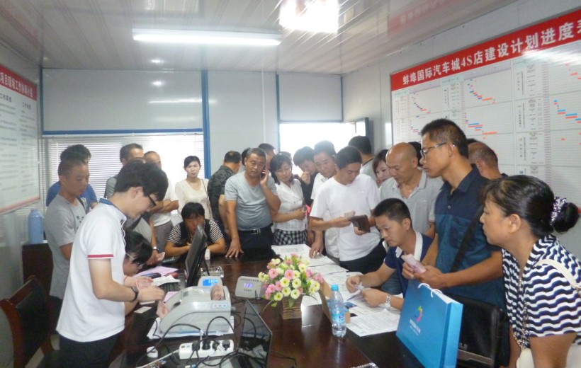 2013年9月8日,蚌埠國際汽車城一期商鋪認(rèn)籌活動火爆開啟。當(dāng)日早晨7:00就已經(jīng)有客戶來到營銷中心等候認(rèn)籌,等到8:00認(rèn)籌正式開始時,營銷中心早已是人氣爆棚。9月8日當(dāng)天來訪客戶達(dá)到204組,共認(rèn)籌180套商鋪,可見客戶們對汽車城商鋪充滿信心,紛紛搶定。