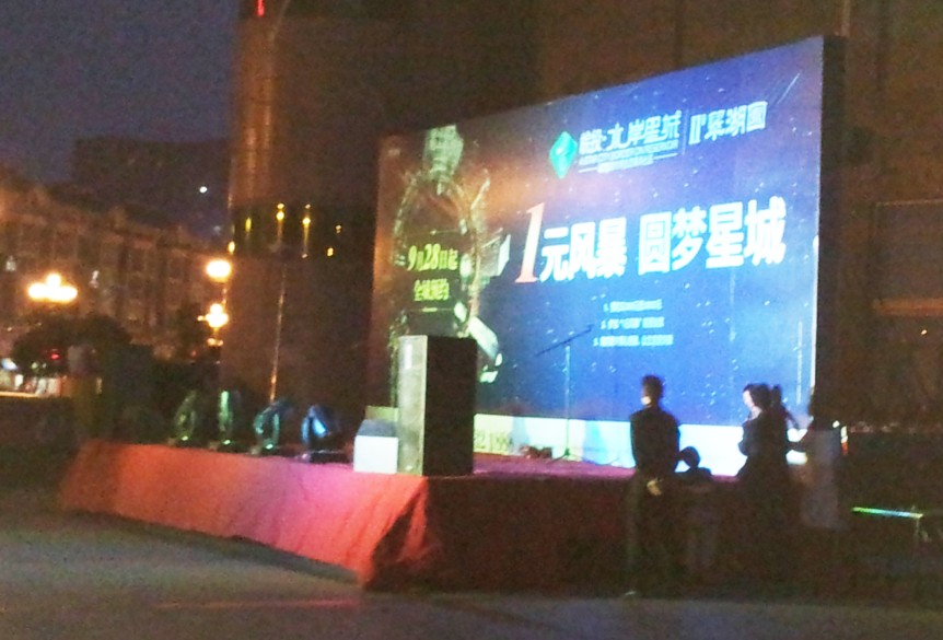演出首先由主持人隆重介紹皖投•水岸星城項目以及正在開展的“1元風(fēng)暴 圓夢星城”活動概況;為配合宣傳,舞臺下工作人員把水岸星城項目單頁送到觀眾的手里,方便他們了解水岸星城項目;演出中,主持人適時穿插關(guān)于水岸星城項目有獎問答環(huán)節(jié),傳遞著皖投•水岸星城項目最新的銷售信息。