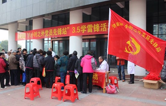 “學(xué)習(xí)雷鋒好榜樣,忠于革命忠于黨”,3月5日是一年一度的“學(xué)雷鋒”紀念日。皖投置業(yè)黨支部第三黨小組于紀念日當天,積極配合沁心湖社居委和望湖社居委,在望湖城“桂香居”項目設(shè)立了綜合咨詢臺和各項服務(wù)臺,認真開展了“八小時之外黨員先鋒站——3.5學(xué)雷鋒”活動。社區(qū)婦聯(lián)、計生辦、社保所等部門的負責人及黨員志愿者共同參加。在近兩個小時的活動中,志愿者們一邊向廣大業(yè)主發(fā)放宣傳資料,一邊耐心解答有關(guān)民政社保、醫(yī)療衛(wèi)生、計劃生育、政策法規(guī)等方面的問題。并積極為業(yè)主們提供了醫(yī)療服務(wù)、家電維修、理發(fā)等多項公益服務(wù)。
