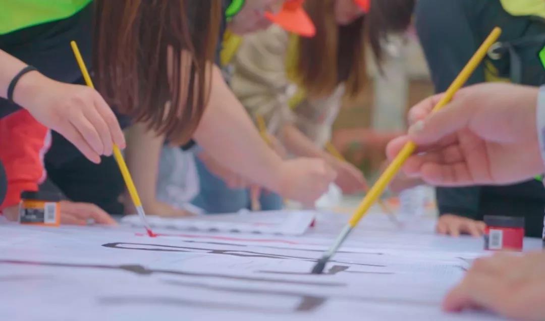 “皖投”兩個字,哪怕是一個人稍有不慎,字幅都無法完成,在一眾人的通力合作下,完美呈現(xiàn)。